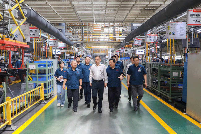 王志堅調研了總裝車間整車裝配線工藝流程、精益生產等方面的情況,對改善車間工作環(huán)境提出具體技改要求。在整車下線廣場,王志堅詳細詢問新能源產品相關情況,仔細檢查車架底盤線路管路裝配質量。他指出,要聚焦細節(jié)管控,持續(xù)推進裝備升級與工藝改進,筑牢產品質量根基。要持續(xù)營造“一家人、一條心、一起干、一定成”的文化生態(tài),著力優(yōu)化一線工作環(huán)境,強化安全生產理念,做好基層服務保障。