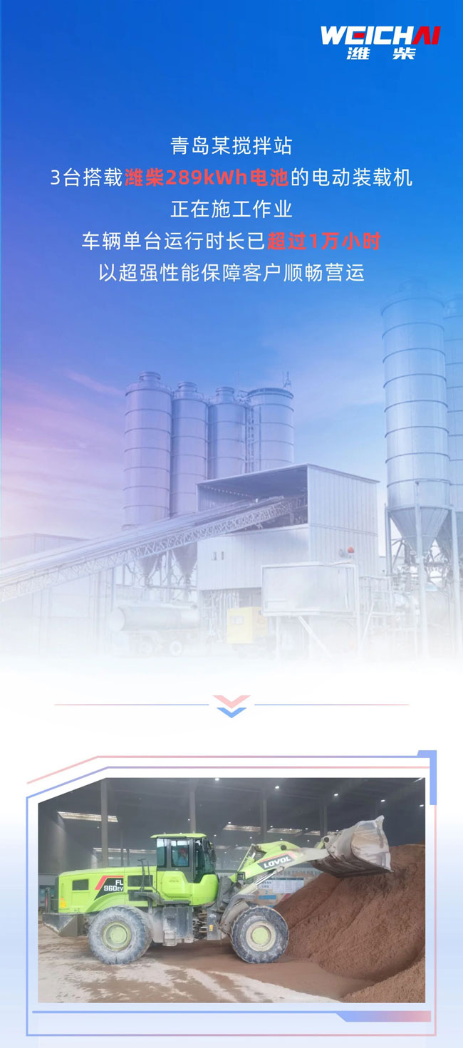 攪拌站作業(yè)工況多腐蝕材料,平均每天持續(xù)作業(yè)時長在20小時左右,對電池的可靠性、續(xù)航性要求極高。攪拌站高師傅介紹:“過去,我一直開的是搭載濰柴發(fā)動機的裝載機,車輛動力足、出勤率高、更省油。 2023年公司購入的這批濰柴新能源產(chǎn)品,運行表現(xiàn)依然不讓人失望!"