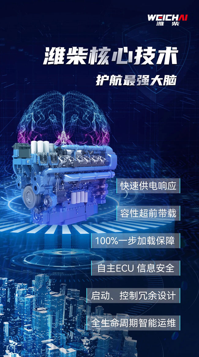 作為本次展會的“焦點”,濰柴20M55系列陸用標準型發(fā)電機組歷經(jīng)三十余項耐久、性能測試,可靠性高;遠程診斷、數(shù)據(jù)記錄、維護保養(yǎng)及預(yù)防性維修提醒;快速起動帶載,強帶載能力,滿足100%突加不熄火;ECU由濰柴自主設(shè)計開發(fā),信息安全可靠、無憂。