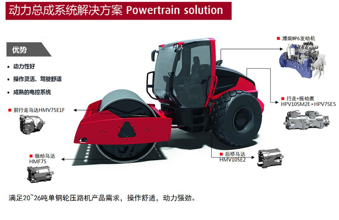 集成濰柴發(fā)動機和液壓元件,結合自主電子控制系統(tǒng),通過系統(tǒng)優(yōu)化匹配和定制化開發(fā),實現(xiàn)節(jié)能減排,提高工作效率和操作舒適性。